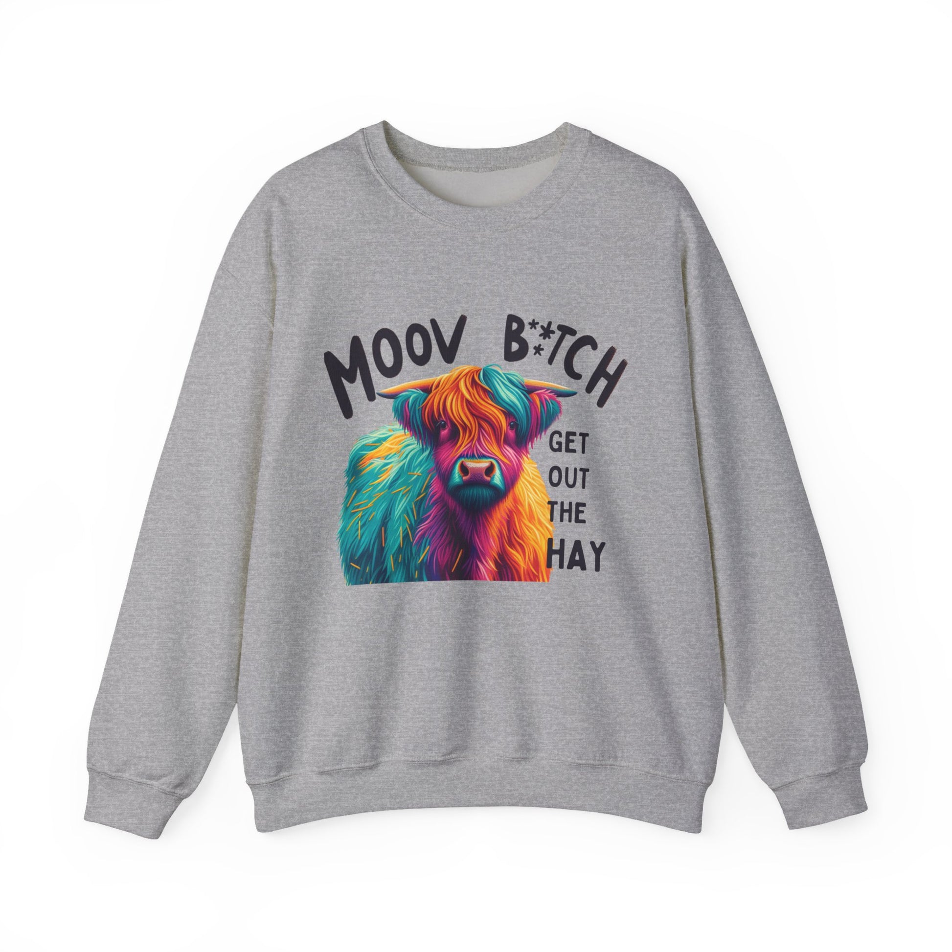 Colorful Cow Humor Sweatshirt - "MOOV B*TCH, GET OUT THE HAY" Design