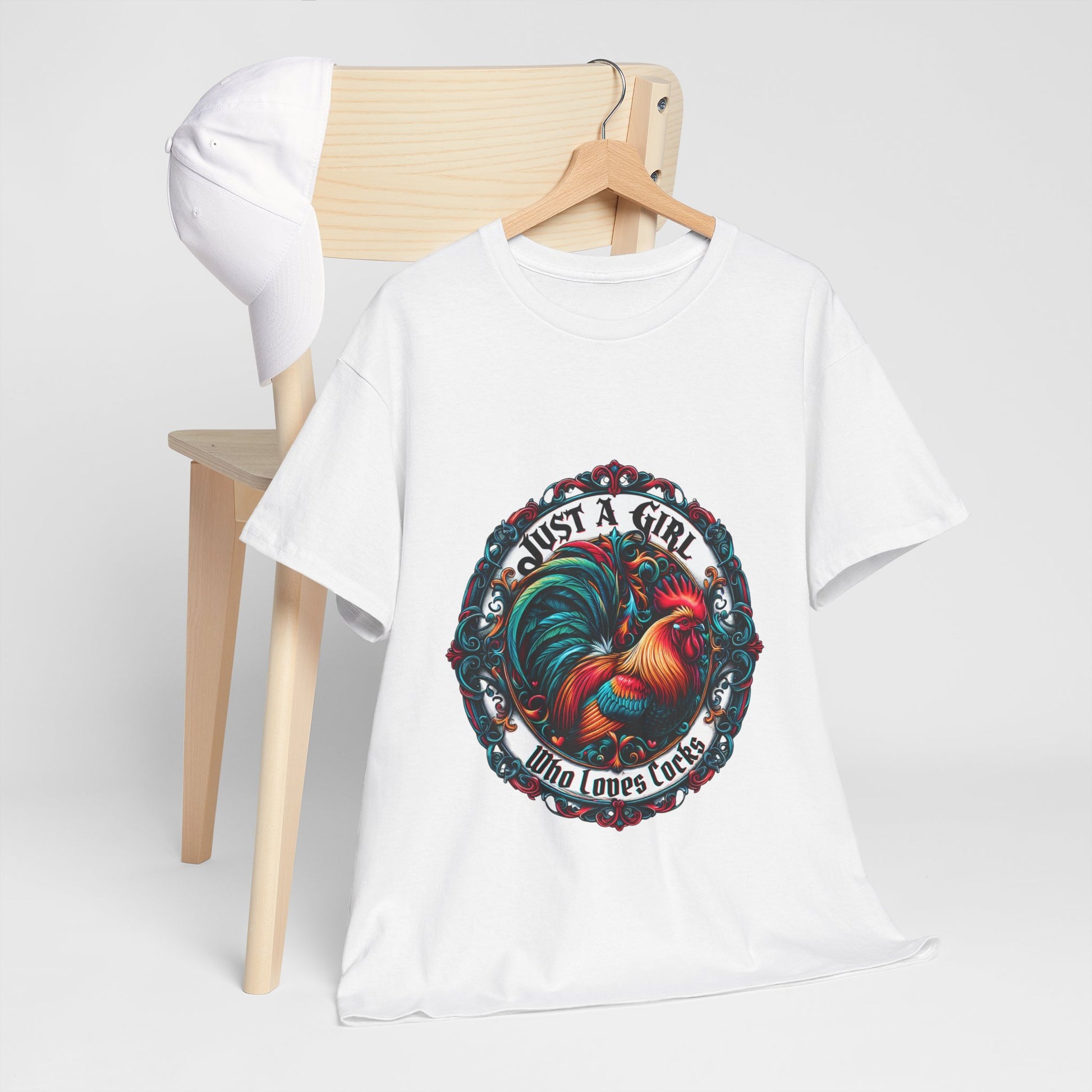 Just a Girl Who Loves "roosters?" T-Shirt, Fun Gift for Friends, Casual Wear, Birthday Gift, Unique Graphic Tee